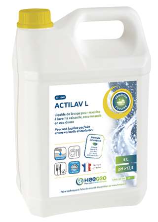 Produit liquide très concentré à fort pouvoir dégraissant destiné au lavage de la vaisselle en machine industrielle et professionnelle utilisant de l’eau douce ou traitée par un adoucisseur d’eau.