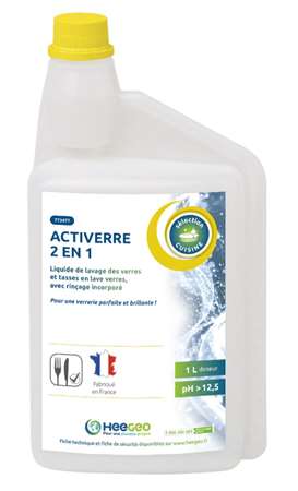 Liquide de lavage des verres et tasses en lave verres, avec rinçage incorporé.