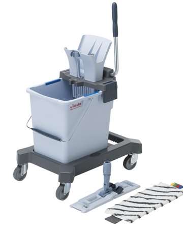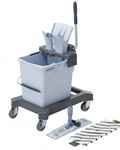 Contient 1 seau 25L, 1 pressse à levier, 1 châssis à roulettes, 1 support pour frange et 1 frange microfibre.